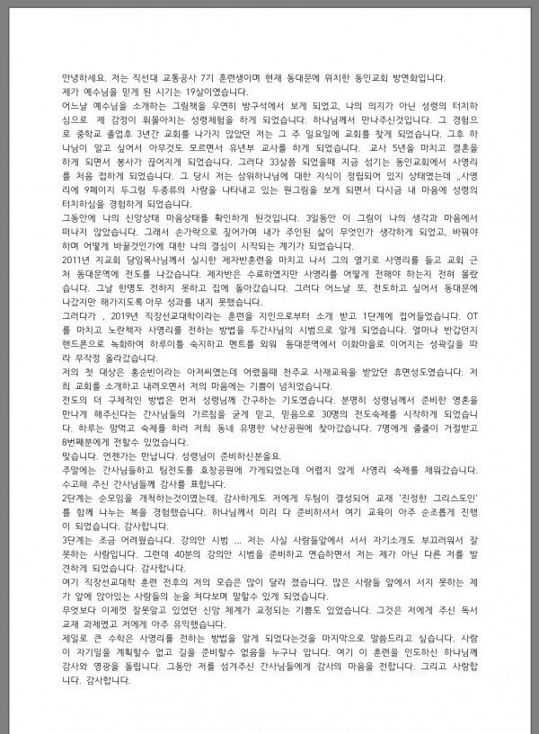 훈련간증문을 올려드립니다